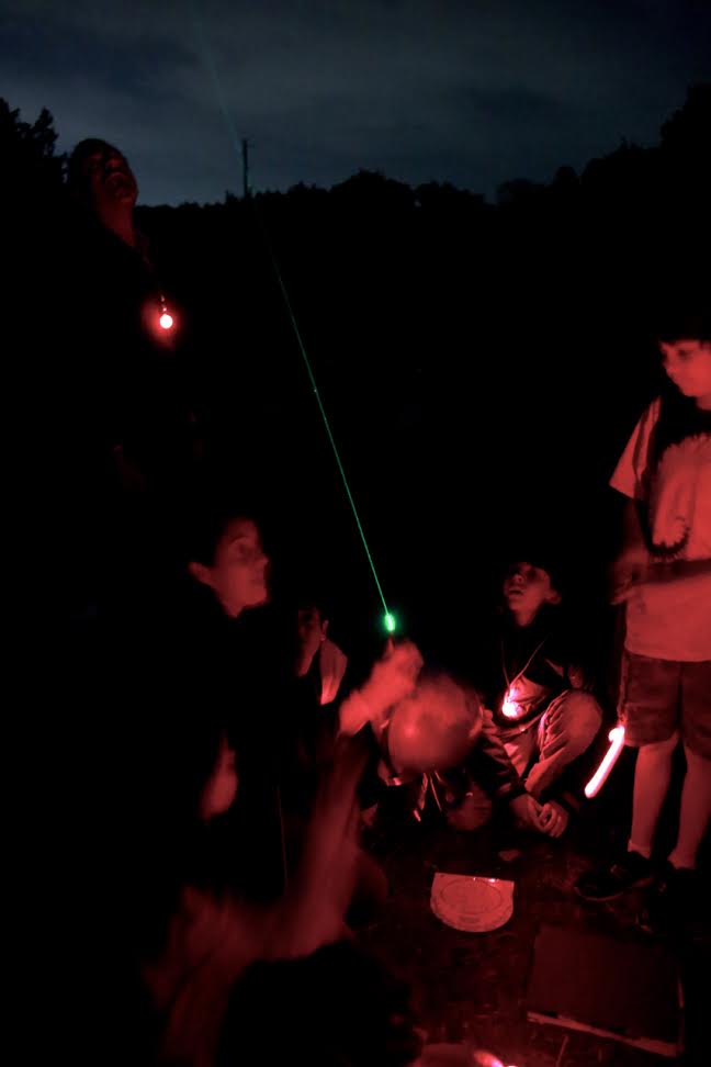 Elementary students from Cedars Montessori met me under the stars and got to know a Dobsonian mount telescope before we headed outside to see Mars in conjunction with Venus and Jupiter and it’s Galilean moons. Even though the clouds started to creep in on us, we still got to see the Orion nebula and of course our heavily cratered Moon. The students were intrigued by my green laser pointer! Below you can see me modeling the earth’s axis and it’s precession. To find out why this is so important to us here on Earth, sign up for Hands-on Astronomy and immerse yourself in the starry sky above.
