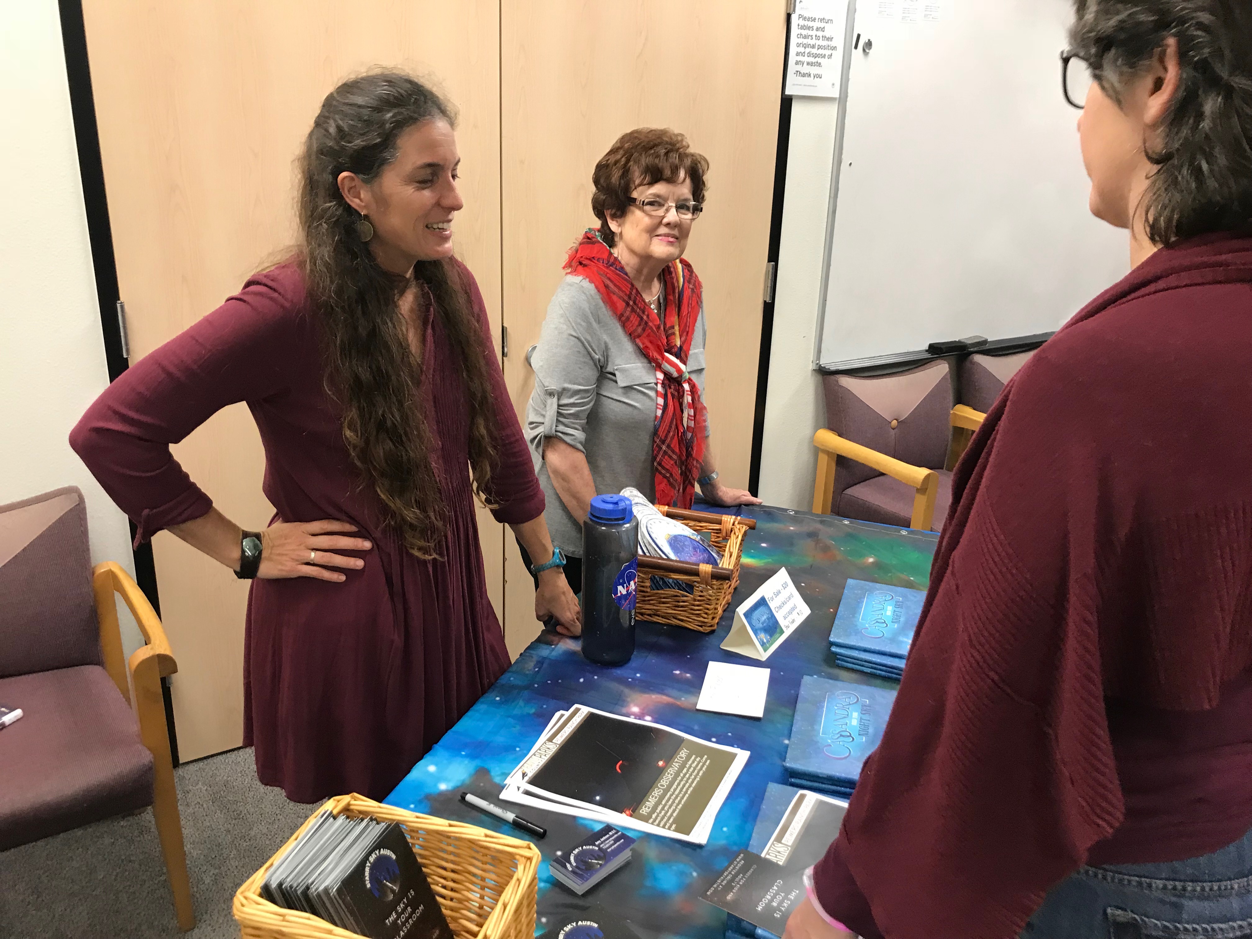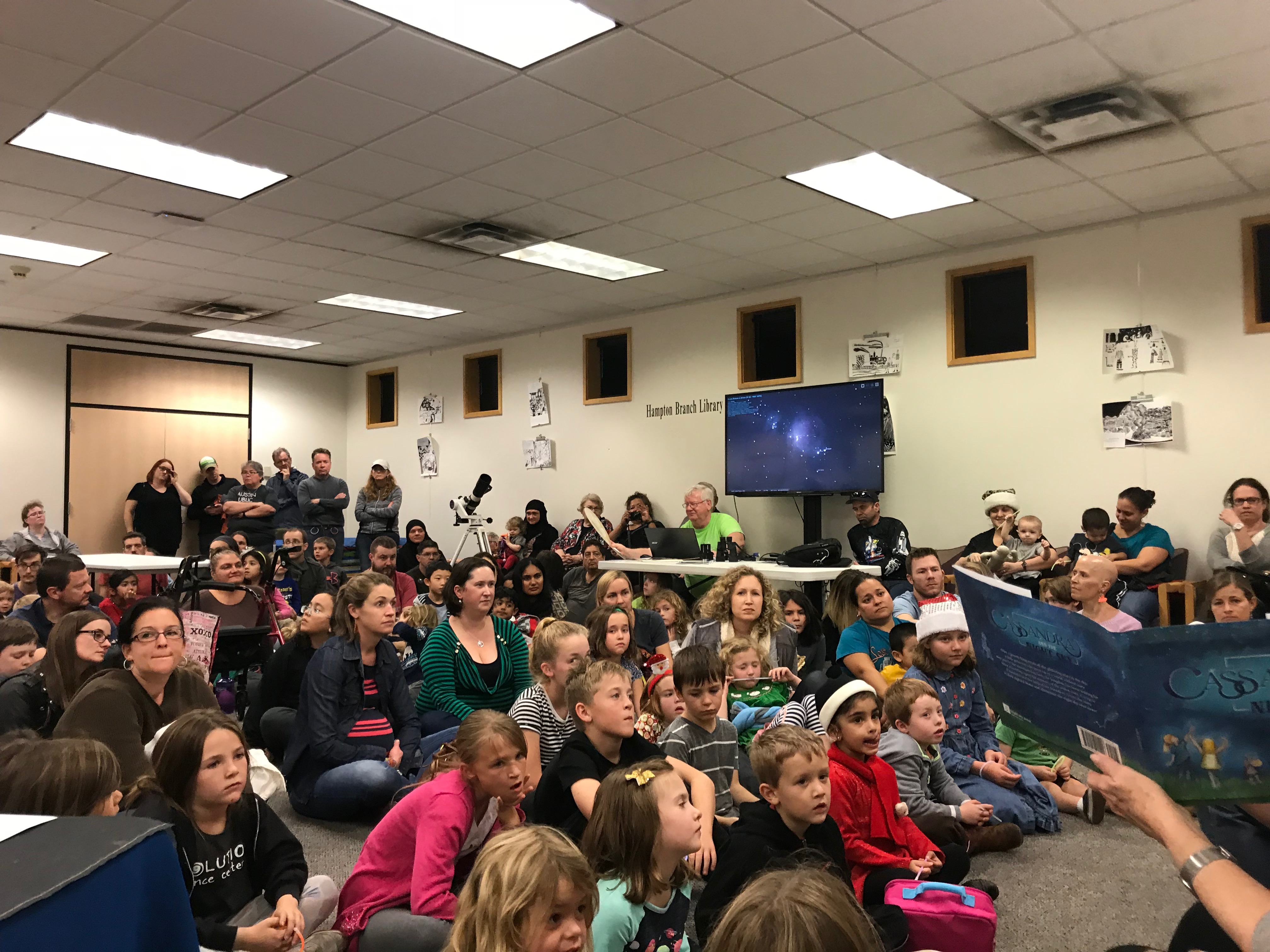 What a fun night last night at the Will Hampton Branch Library! Their ‘Reading the Stars’ event was filled with space themed cookies, hot cocoa, a reading of “Cassandra and the Night Sky” with my mom- the illustrator- joining the event, astronomers from the Austin Astronomical Society, and the Austin Nature and Science Center‘s Starlab. What a great way to bring some ‘light’ to the longest night of the year, the Winter Solstice!
